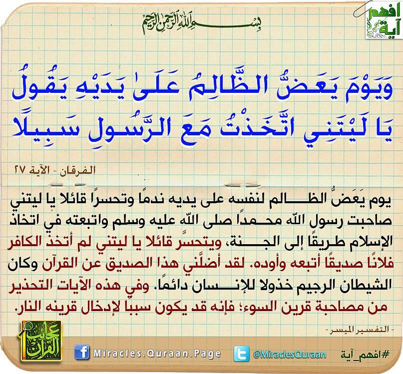 تطبيق آية On Twitter ويوم يعض الظالم على يديه يقول يا ليتني اتخذت مع الرسول سبيلا يا ويلتى ليتني لم أتخذ فلانا خليلا لقد أضلني عن الذكر بواسطة تطبيق آية Https T Co 5ctqaajfdy