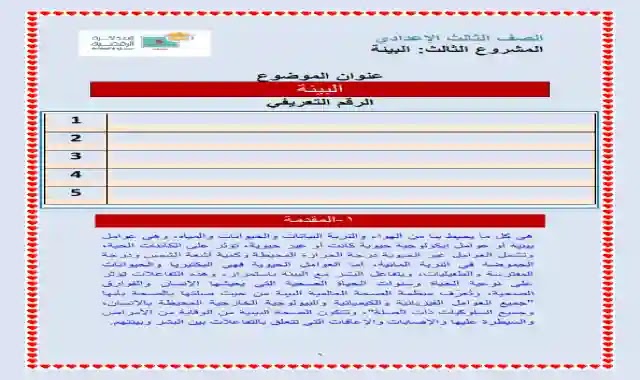 بحث عن البيئة للصف الثالث الاعدادي