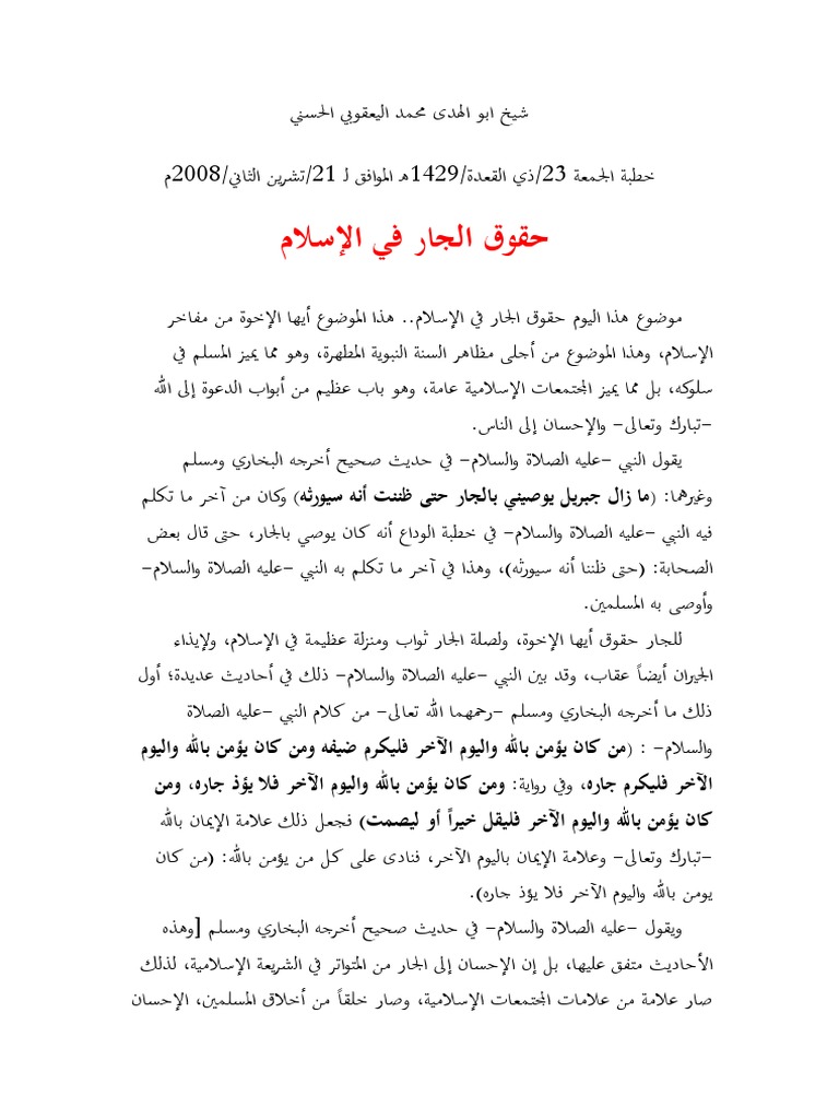 460 20081121 Yحقوق الجار في الإسلام Doc