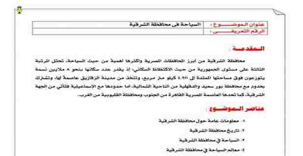نموذج مشروع بحث استرشادى عن السياحه للصف السادس الابتدائي