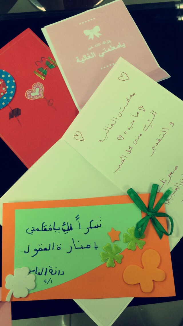 الابتدائية بنات الريان عمل بطاقه شكر للمعلم