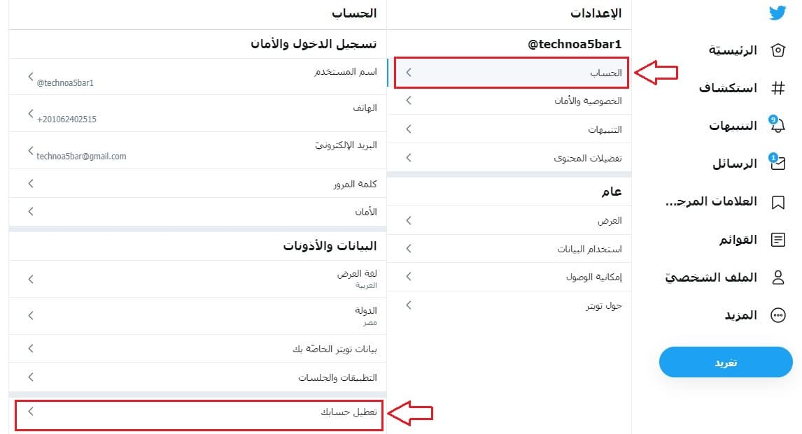 تعطيل حسابي في تويتر ايقاف حساب تويتر حذف الحساب في تويتر