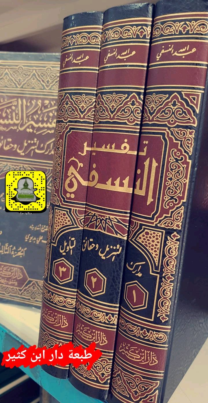 دار طيبة الخضراء A Twitter حاليا متوفر لدينا فقط طبعة دار ابن كثير لكتاب تفسير النسفي م د ار ك الت نز يل و ح قائ ق الت أو يل للإمام أبي البركات عبدالله بن أحمد النسفي