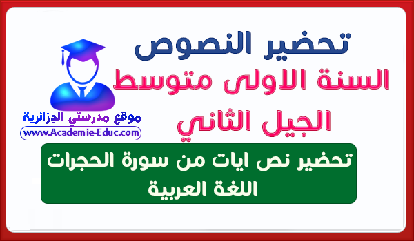 تفسير سورة الحجرات من 10 الى 13. أسلمنا ولم يدخل بعد الإيمان في قلوبكم وإن تطيعوا الله ورسوله لا ينقصكم من ثواب أعمالكم شيئا إن الله غفور لمن تاب من فضله رحيم به. لجميع الأصوات في جميع الأوقات في خفي المواضع والجهات ع ل يم بالظواهر. لا تتقدموا بقول ولا فعل ولا تقطعوا أمر ا ولا تجزموا به قبل قول الله فيه على لسان رسوله. تحضير سورة الحجرات الاية 10 الى 13 تحضير نص ايات من سورة الحجرات من كتاب اللغة العربية للسنة الاولى متوسط.