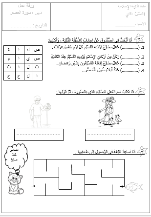 ورقة عمل سورة العصر في التربية الاسلامية للصف الثاني الفصل الاول يوتيو المبتكر