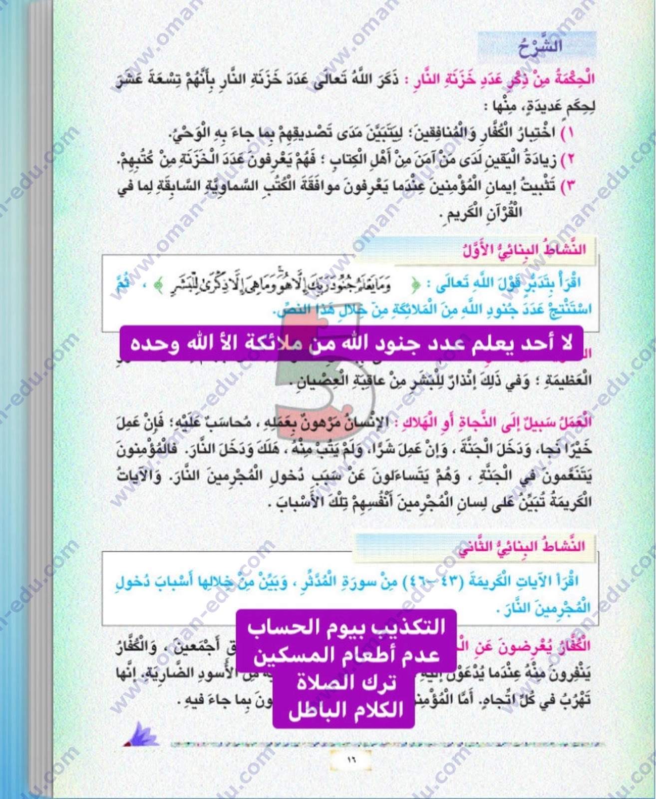 شرح آيات سورة المدثر الصف الخامس الفصل الثاني