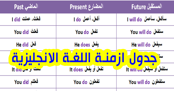 ملخص عام للازمنة جدول الازمنة في اللغة الانجليزية