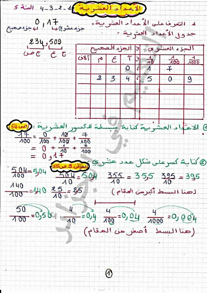 الأعداد العشرية Pdf
