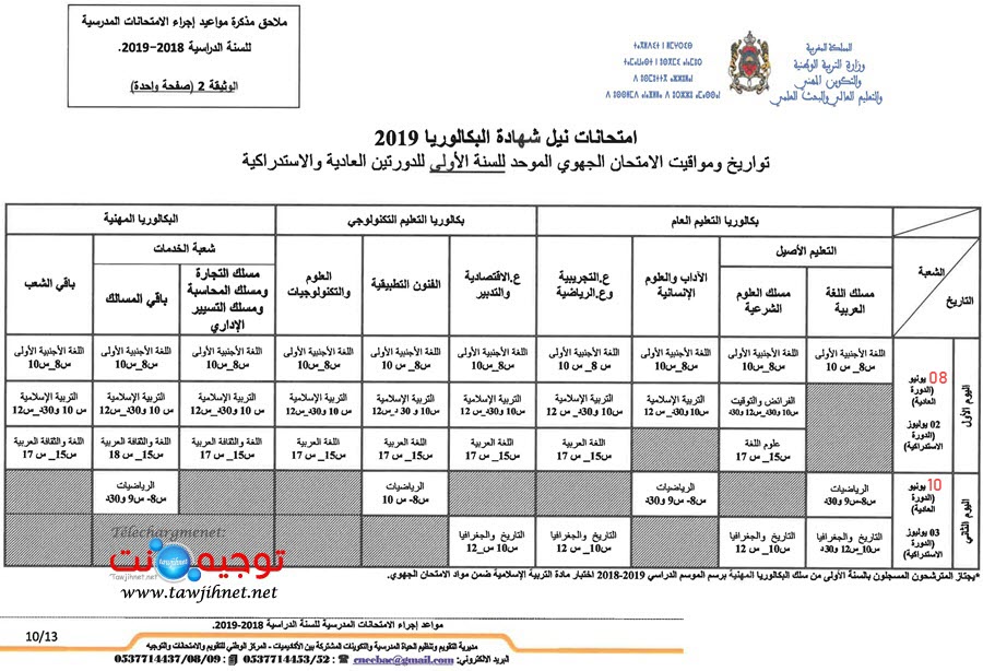 جدولة الامتحان الجهوي الموحد السنة الأولى سلك البكالوريا 2019 1bac منتديات توجيه نت