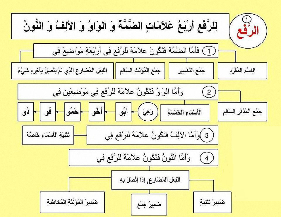 جدول علامات الإعراب الأصلية والفرعية معلومة ثقافية