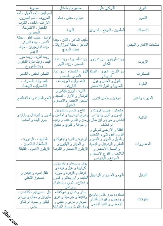 رجيم فصيلة الدم O الممنوع و المسموح و الجدول و التجارب