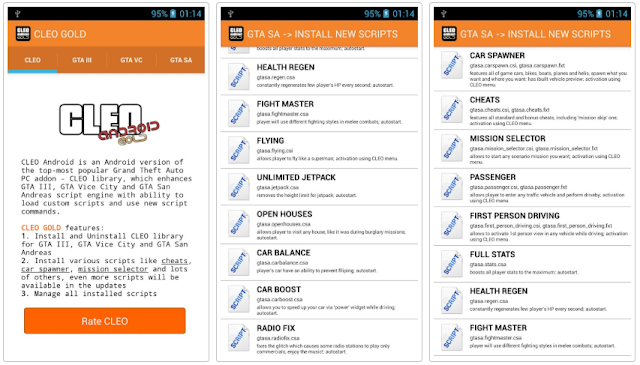 تحميل تطبيق Cleo Gold قائمة الغش للعبة جي تي اي Gta للاندرويد ميديا فاير