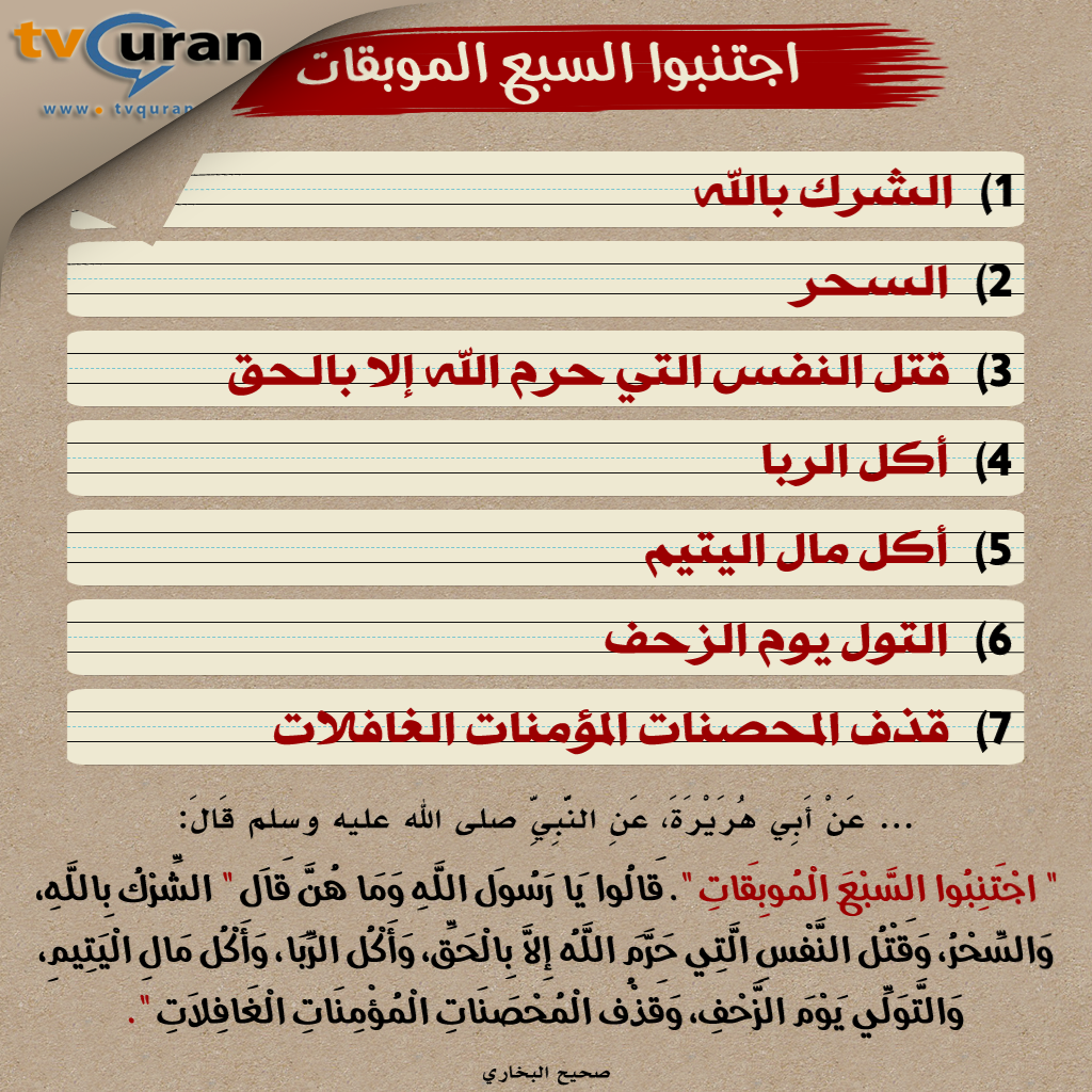 اجتنبوا السبع الموبقات موقع البطاقة الدعوي