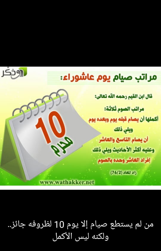 للتذكير غدا يوم التاسع من شهر محرم 1438 هـ وبعد سيكون يوم عاشوراء 10 محرم 1438 هـ لاتنسوا صيام يوم عاشوراء ويوم قبل او يوم بعد