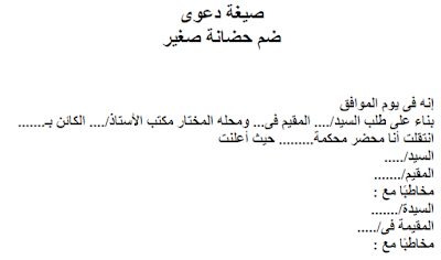صيغة ونموذج دعوى بنفقة الرضاع والحضانة والمسكن