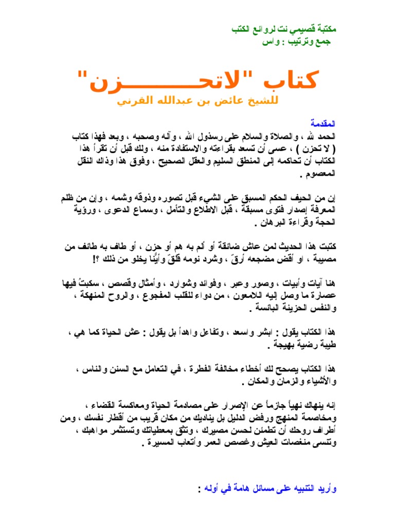 مكتبة مولوي عصام الدين كتاب لا تحزن للشيخ عايض القرني Pdf