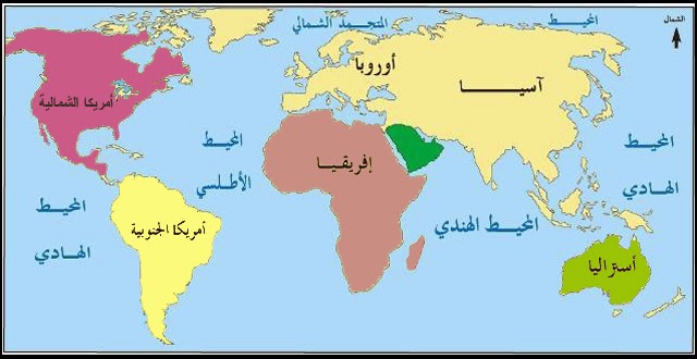 خريطة مختصرة لكل مساحة القارات والمحيطات واهم جزر منهج الثالث الاعدادى ترم اول 2017 للاستاذ محمد هيكل
