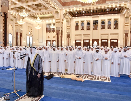 محمد بن راشد وسلطان والحكام يؤدون صلاة عيد الأضحى