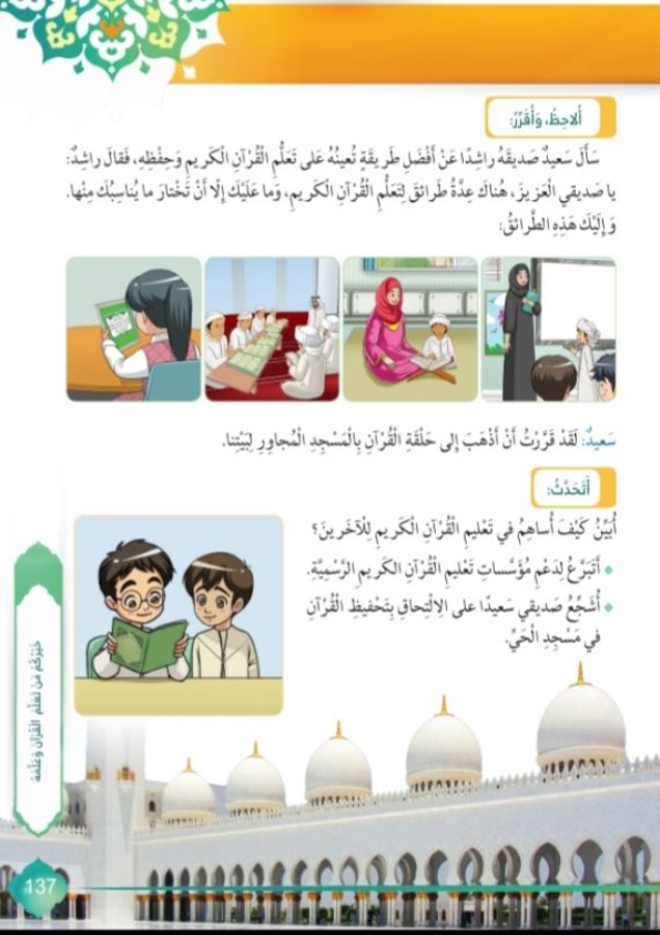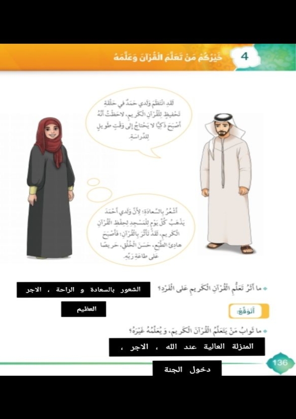 درس خيركم من تعلم القران وعلمه مع الحل لمادة التربية الاسلامية الصف الاول الفصل الثالث منتديات صقر الجنوب